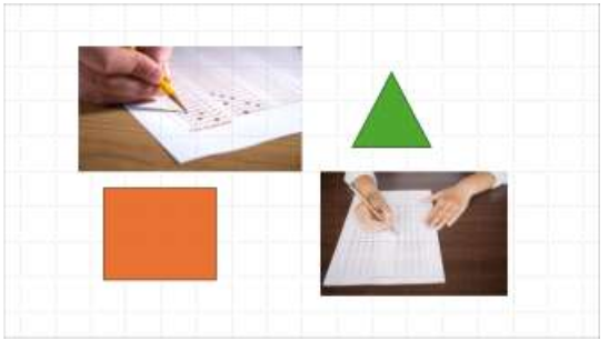 Após adicionar algumas formas e imagens em um slide, durante a construção de uma apresentação em uma versão recente do Microsoft PowerPoint, em português, um usuário observa que o alinhamento desses objetos não está adequado, conforme ilustrado a seguir: