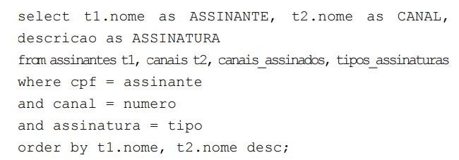 Considere o comando SQL a seguir