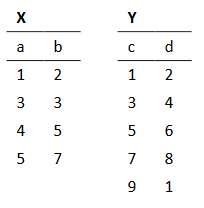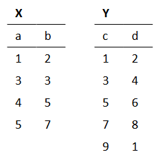 Considere duas tabelas X e Y, com as seguintes instâncias: